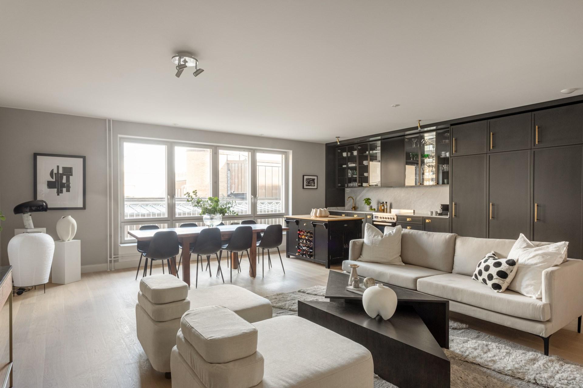Välkommen till ett ytterst välplanerat hem på attraktiv adress mitt i city! Stora fönster och en öppen planlösning skänker bostaden ett otroligt ljusflöde som tillsammans med de väl valda materialvalen bidrar till en känsla utöver det vanliga. Två rogivande sovrum med utgång till balkong, två badrum och hall med generöst med förvaring. Detta hem är ett tillsynes unikt och ljust hem som naturligt kommer frambringa bästa möjliga trivsel. Här bor du i en förening som disponerar garage samt en underbar takterrass med utsikt över Stockholms takåsar.