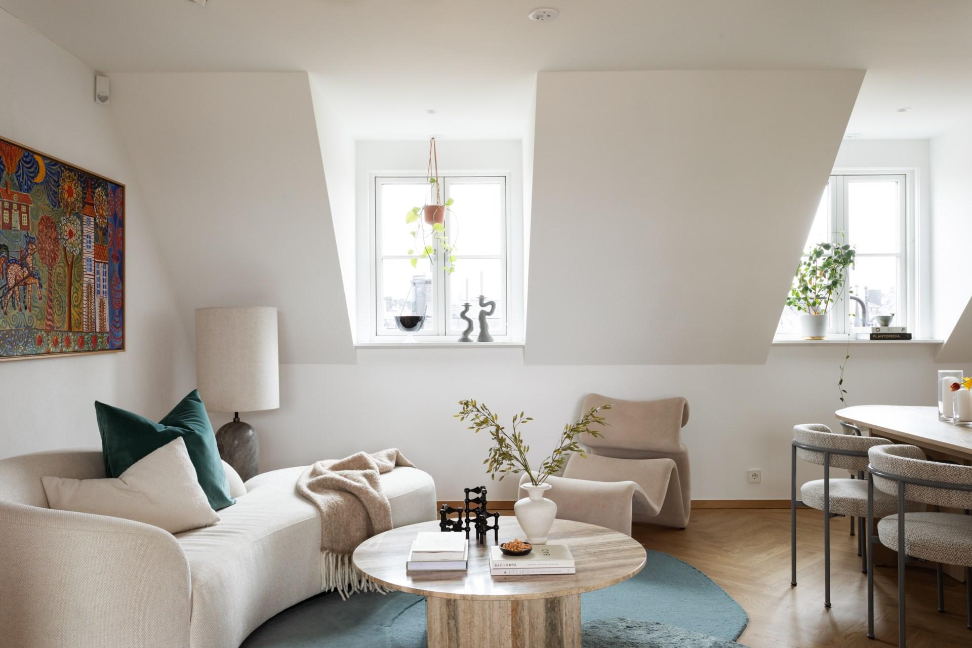 Läget är optimalt precis på gränsen mellan Östermalm och Vasastan, där stadens bästa utbud av restauranger, caféer, butiker och grönområden finns runt hörnet. En vindsvåning utöver det vanliga – för dig som söker något alldeles extra.