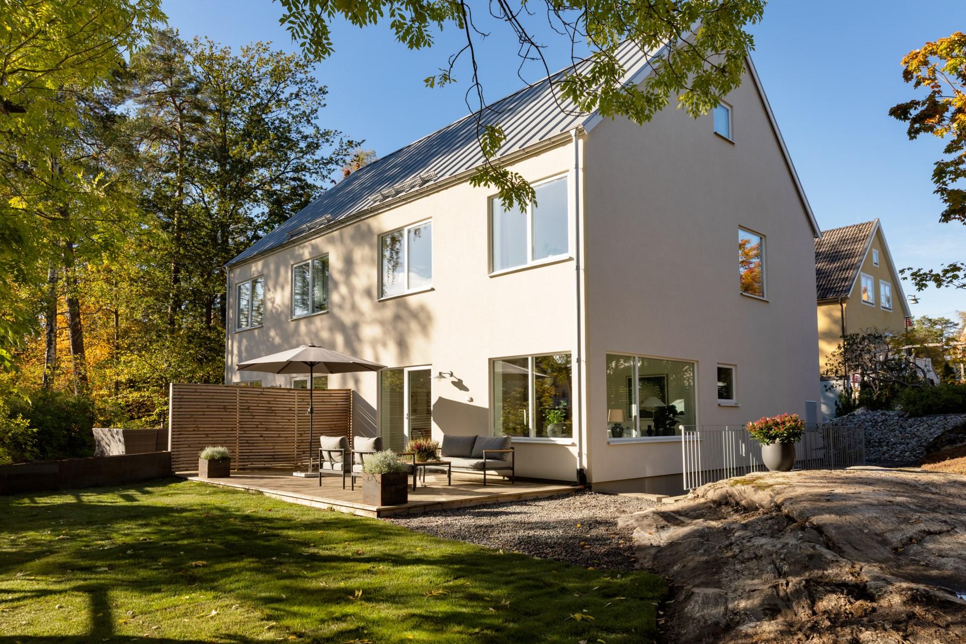Välkommen till en eftertraktad parvilla i hjärtat av idylliska Smedslätten – ett hem som förenar elegans, ljus och funktion. Denna stilrena vitputsade parvilla, ritad av Arkitekt Ateljé Nord, uppfördes 2021 och erbjuder totalt 206 kvm golvyta fördelat på fyra plan. Ett boende perfekt för dig som söker ett flexibelt hem som enkelt kan anpassas efter familjens olika behov och livsstilar. Här ges en sällsynt möjlighet att förvärva ett representativt hem i ett av Brommas mest eftertraktade områden - dessutom i en skuldfri förening med stark ekonomi, där alla större underhåll redan är utförda och inga fler är planerade inom överskådlig tid. Detta är ett boende att trivas i länge, med både vardagslyx och framtida värdepotential. Tillträde kan ske inom kort. Välkommen att längta hem!