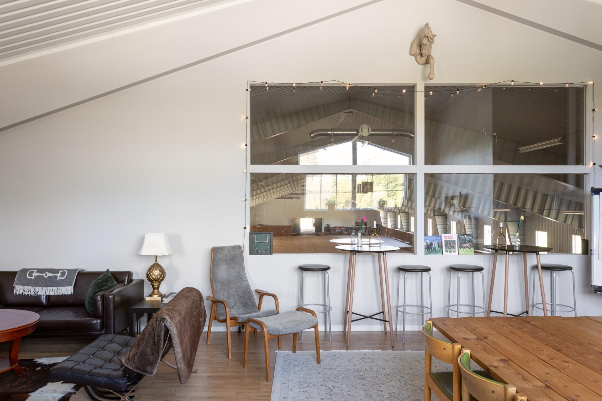 Stallet är komplett med privat sadelkammare/fikarum, separat sadelkammare för inackorderingar, tvättstuga, torkrum, teknikrum, toalett och två helkaklade spolspiltor, varav en med solarium. Sex av boxarna har helt stängningsbara galler, och en uppvärmd vind på ca 70 kvm ger extra förvaringsmöjligheter. Alla utrymmen har golvvärme, elfrostsäkra vattenkoppar och elektroniska lås för säkerhet och bekvämlighet.