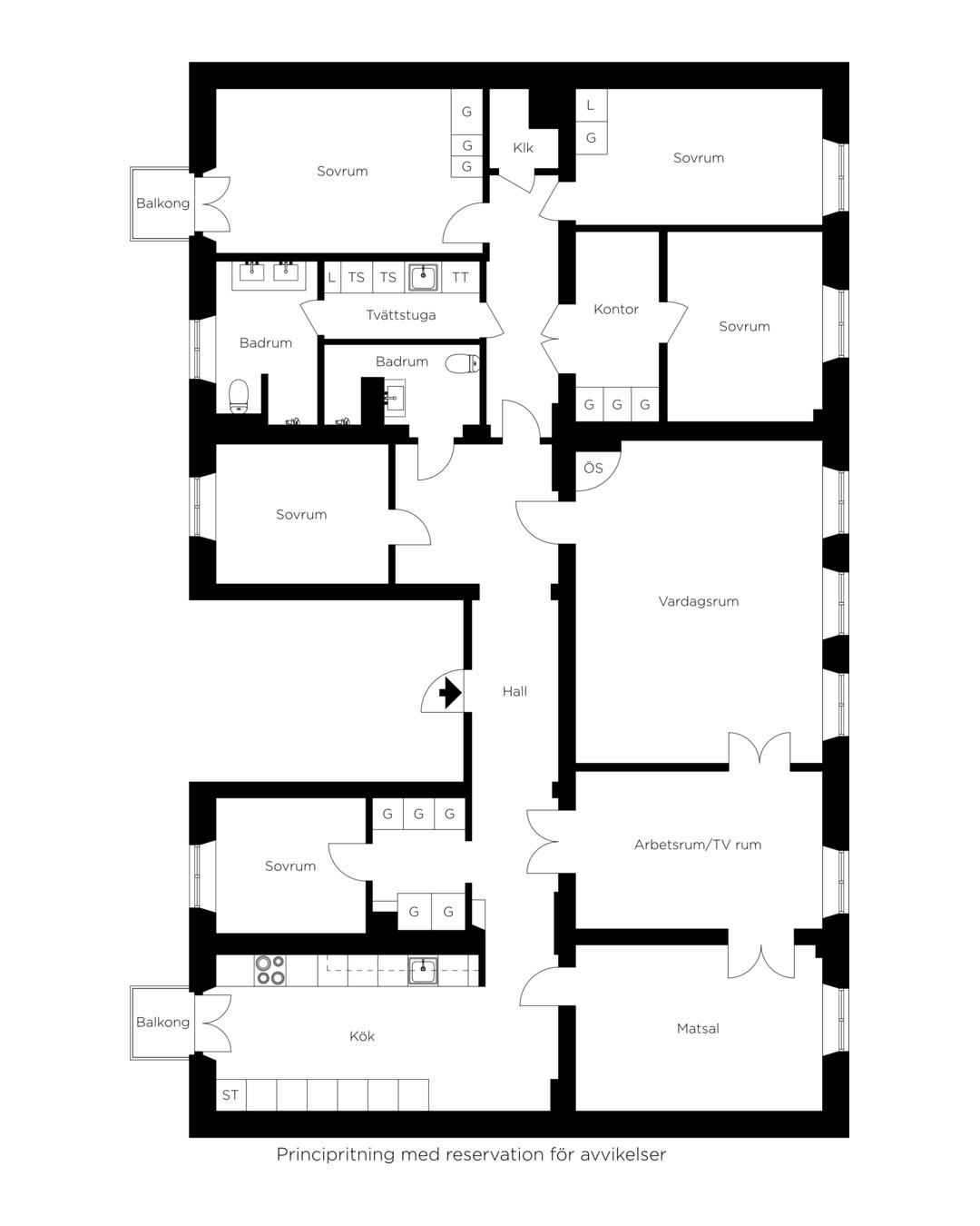Generös familjevåning på eget våningsplan med två balkonger och öppen spis!