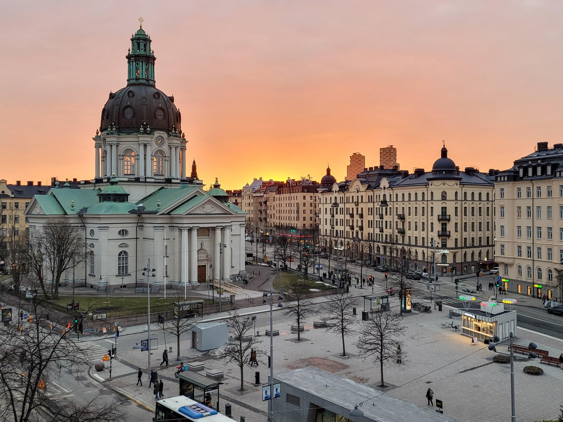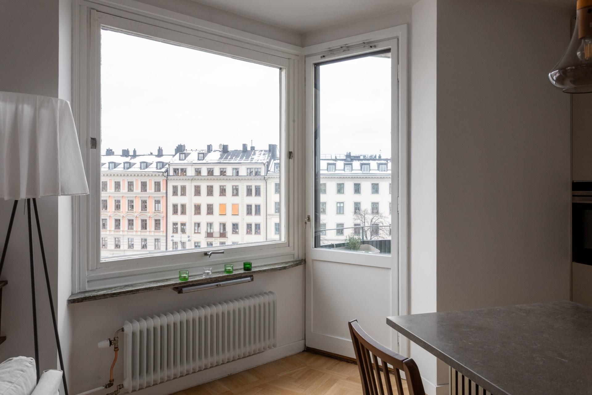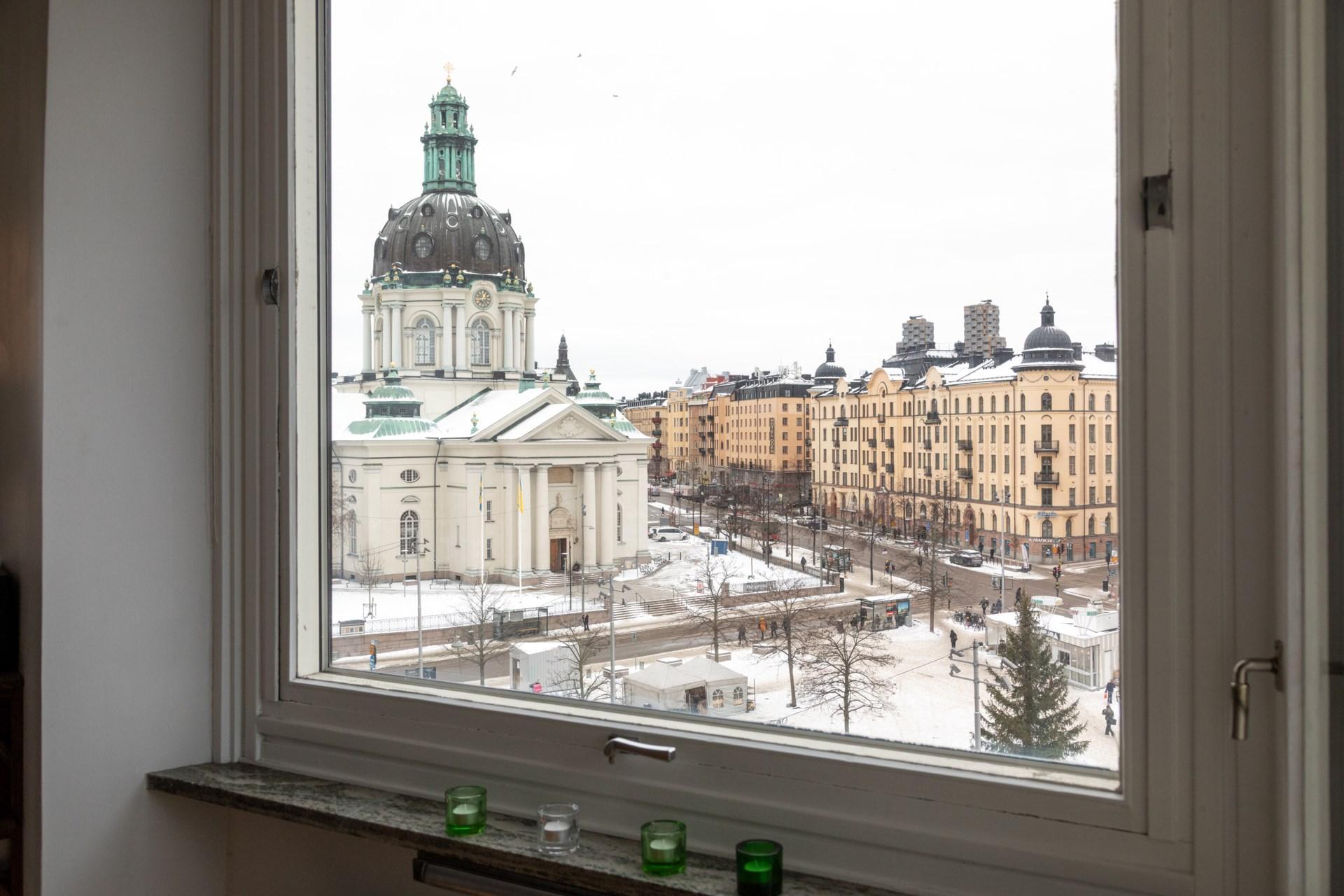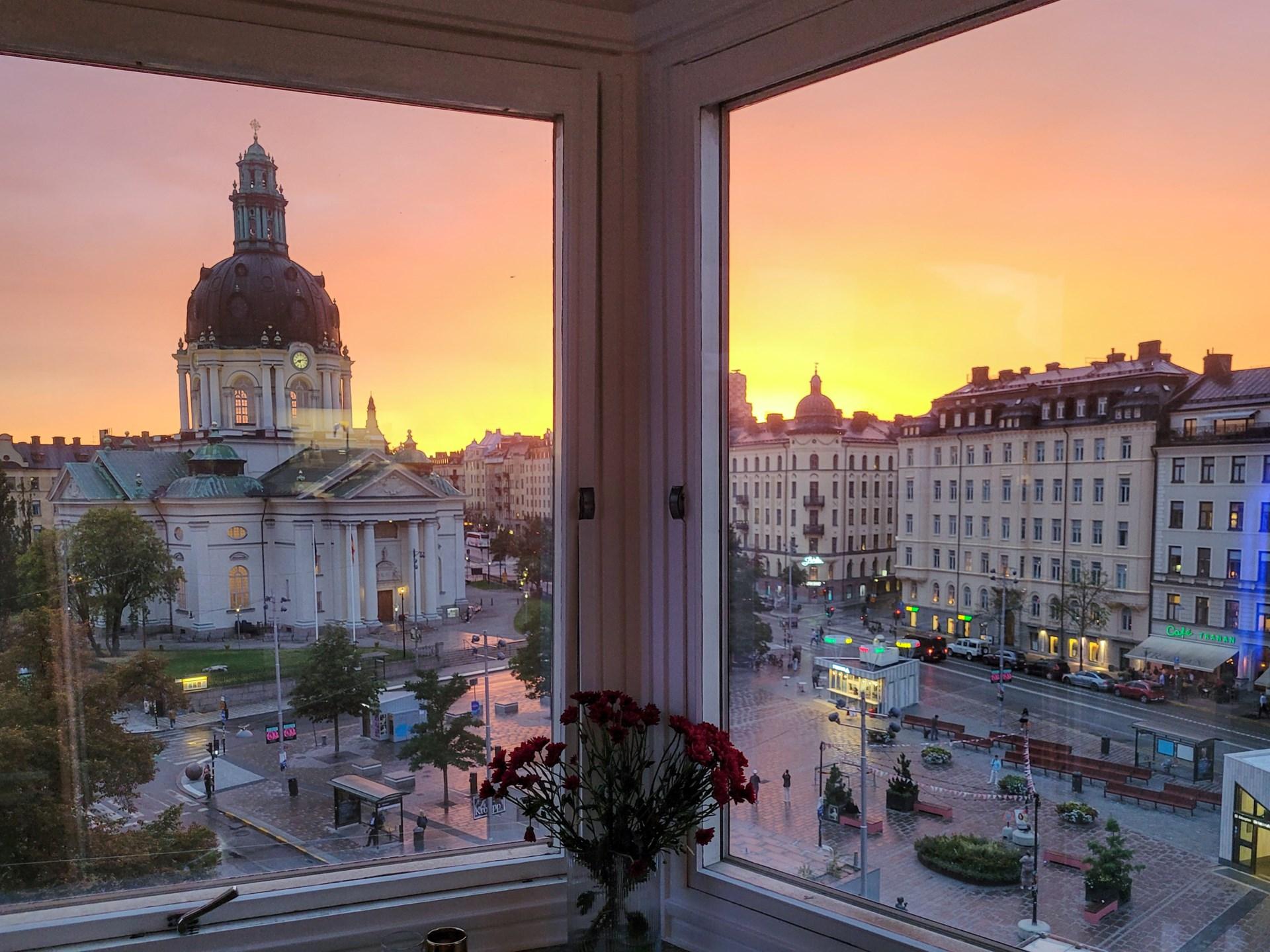 En sällsynt bostad mitt i Vasastan – med solnedgångar över ett av stadens vackraste stadsrum.