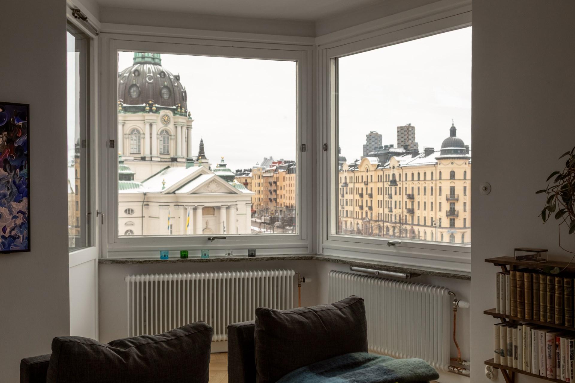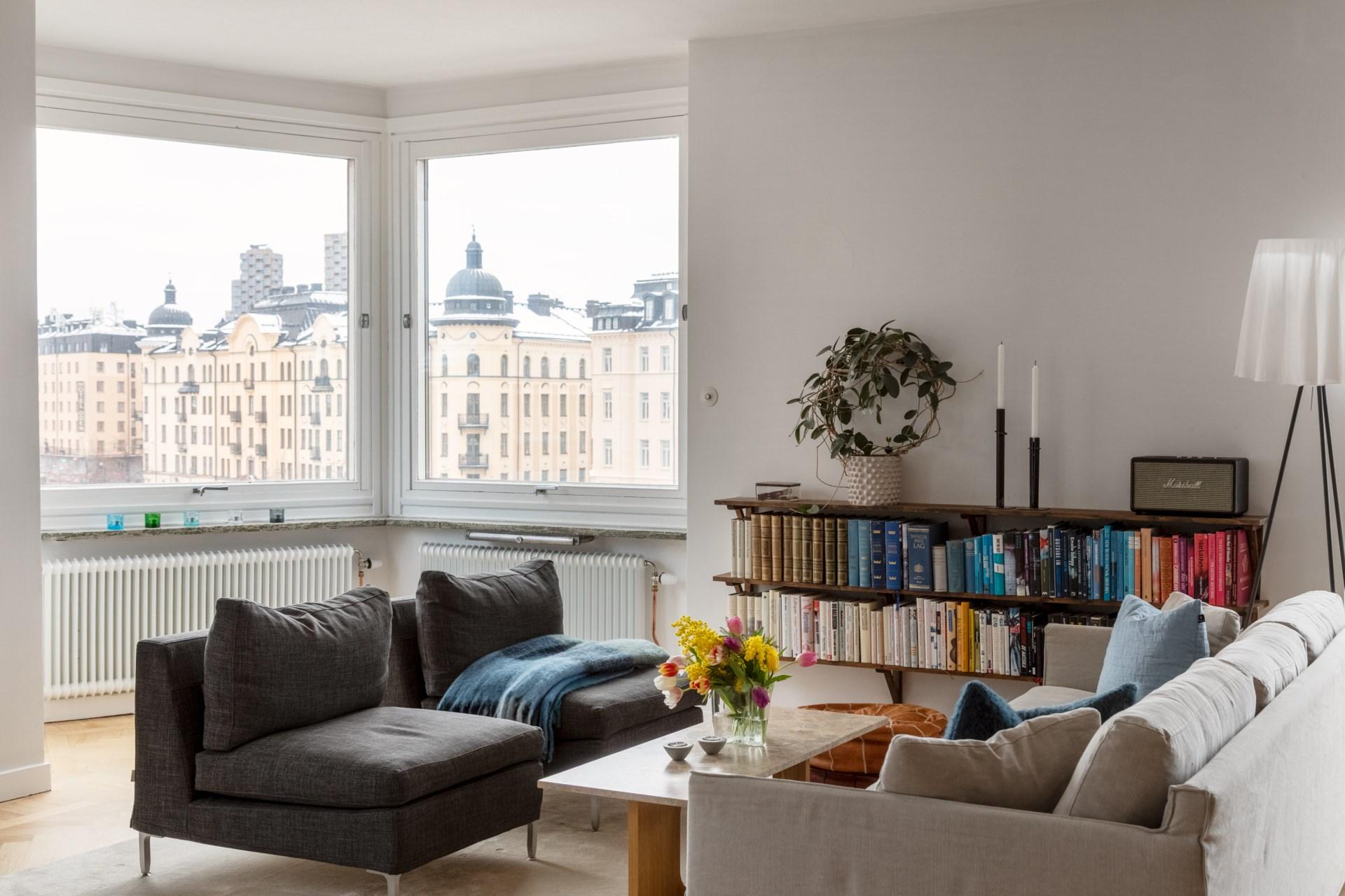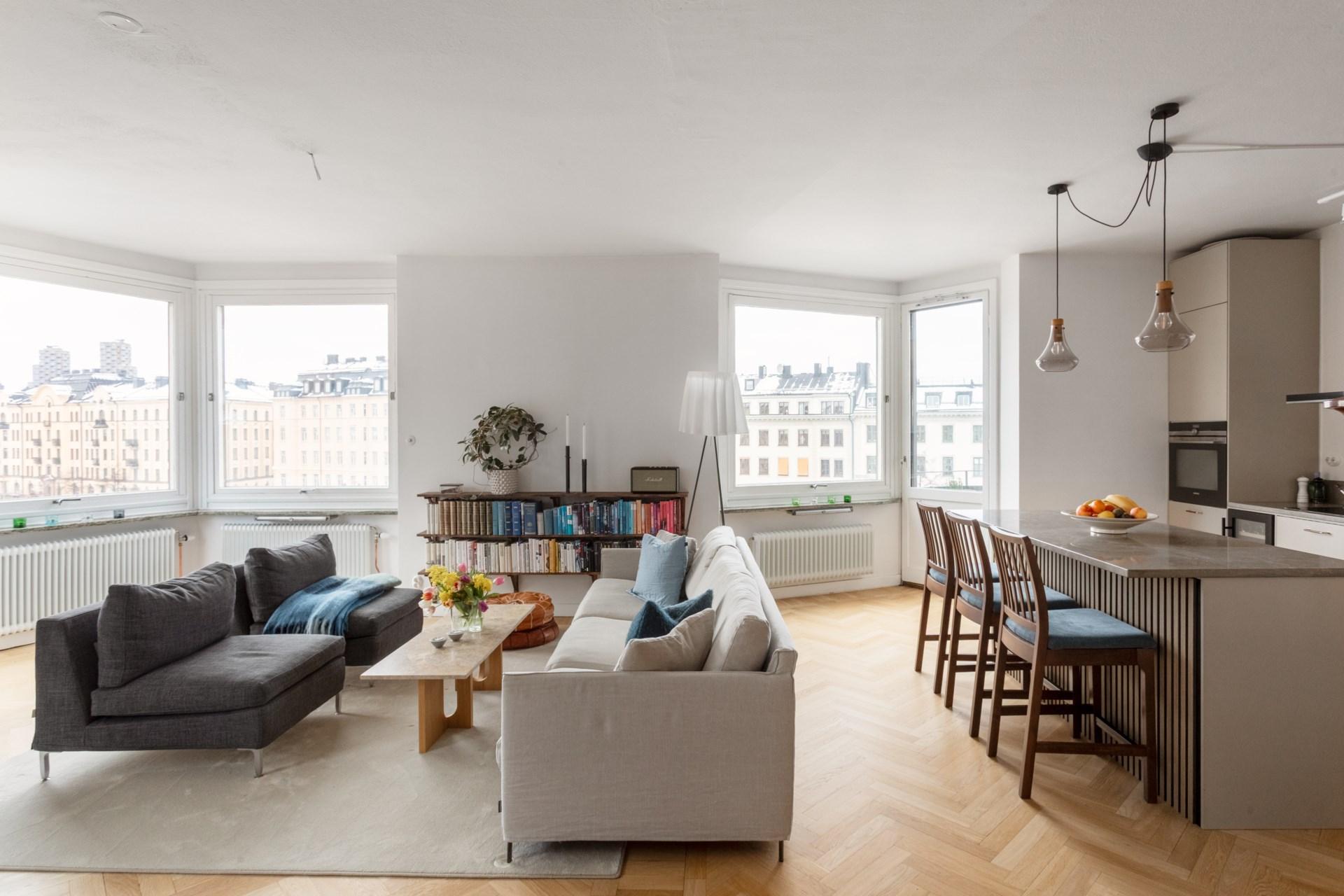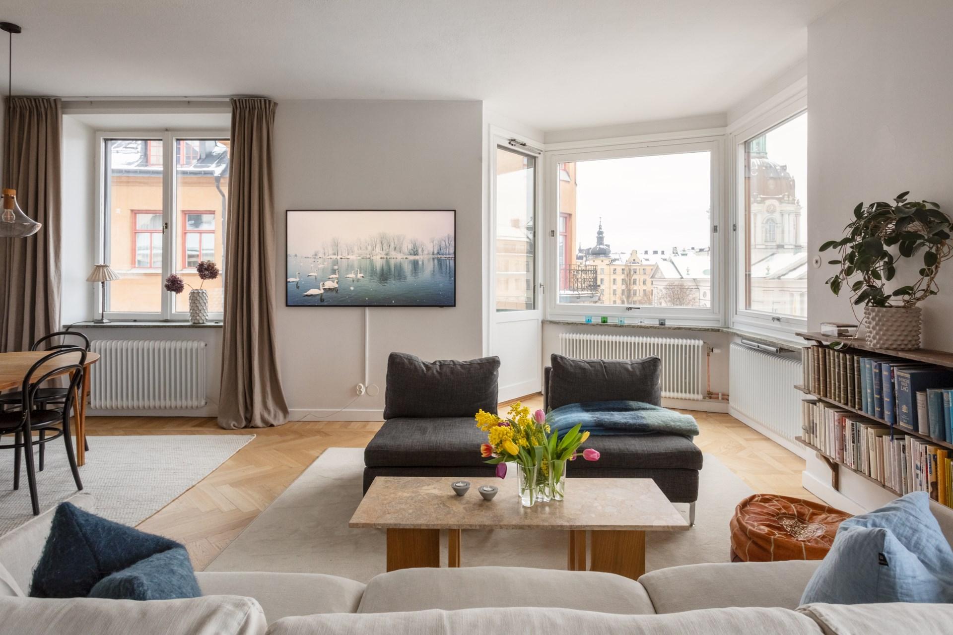 Elegant hörnlägenhet med tre balkonger - magisk utsikt över Odenplan - Möjlig 5:a