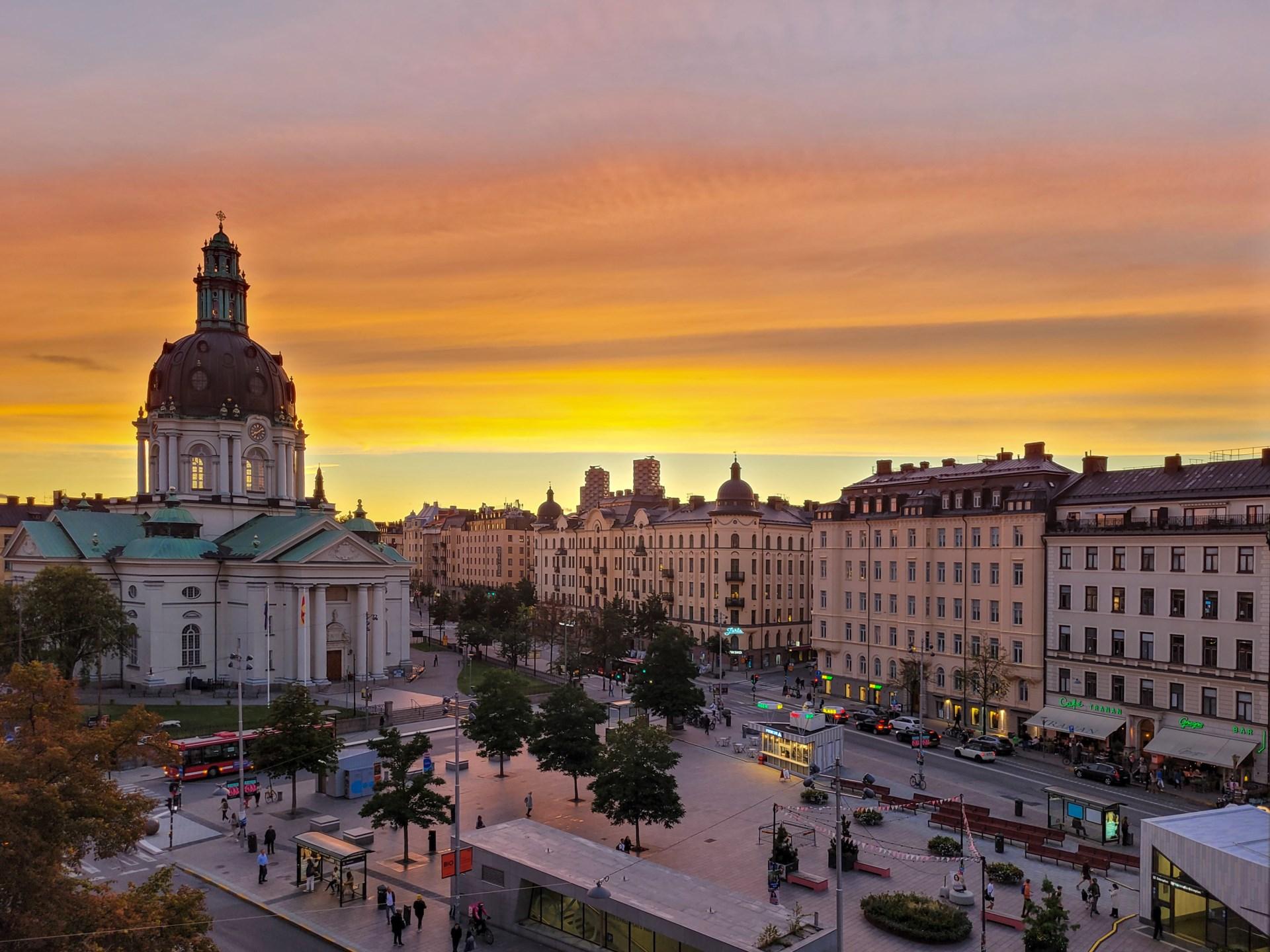 En sällsynt bostad mitt i Vasastan – med solnedgångar över ett av stadens vackraste stadsrum.